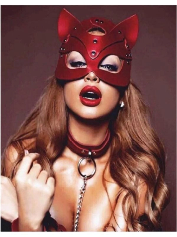 Fantezi maske, tasma ve kelepçeden oluşmaktadır. Deri yüzey sayesinde uzun yıllar kullanma olanağı sağlamaktadır.